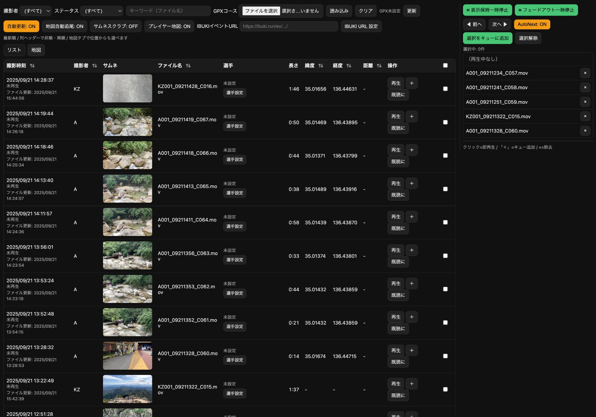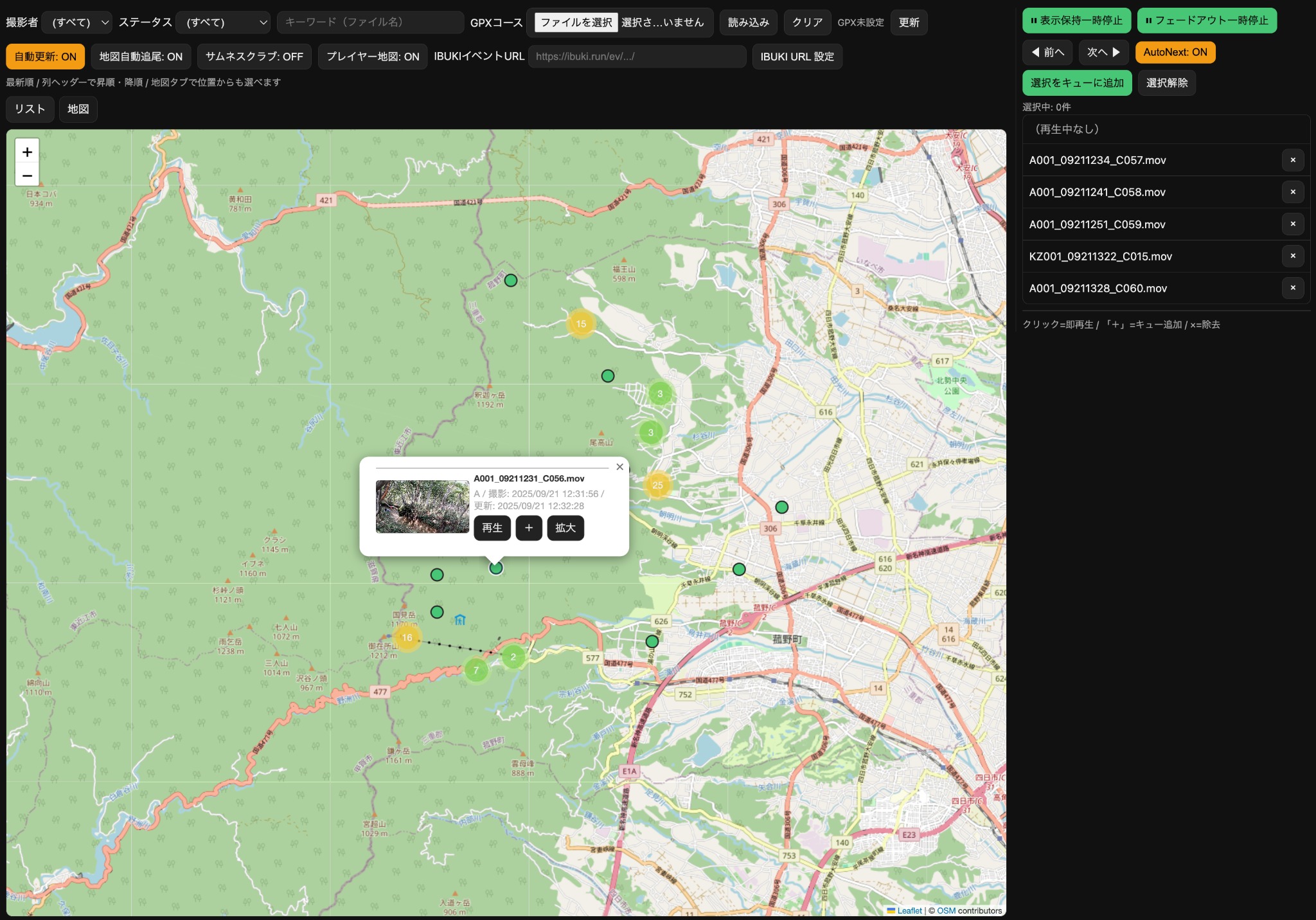 ・撮影:スマートフォン等で山中でも撮影可能(圏外可)。 ・アップロード:通信圏内に戻った時点でクラウドへアップロード。 ・スタジオ受信:クラウドに到着した映像は、配信スタジオのPCに自動ダウンロード。 ・監視&キュー編集:スタジオPC上の監視フォルダが新着クリップを検出。オペレーターはブラウザUIからプレビュー・並べ替え・キュー作成を行い、配信へ送出します。